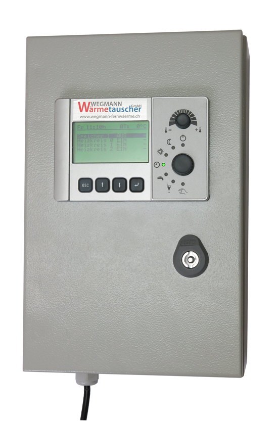 Ausgestattet mit 2 GB MicroSD Karte welche als Programm-, Parameter-, und Trendspeicher verwendet werden kann, mit elektronischer Leistungsbegrenzung über den M-Bus-Wärmezähler zu höchstem Qualitätsstandard sowie einfachste und unkomplizierte, menügeführte Bedienung mit grossem 8-Zeilen Klartextdisplay.