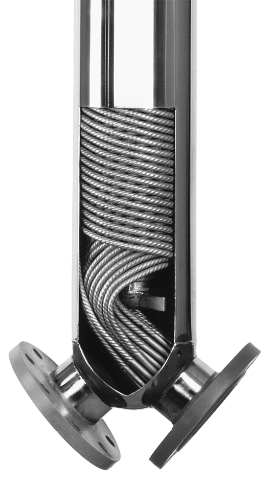 Aufbau des JAD Spiralrohrwärmetauschers mit den gewendelten Rohren