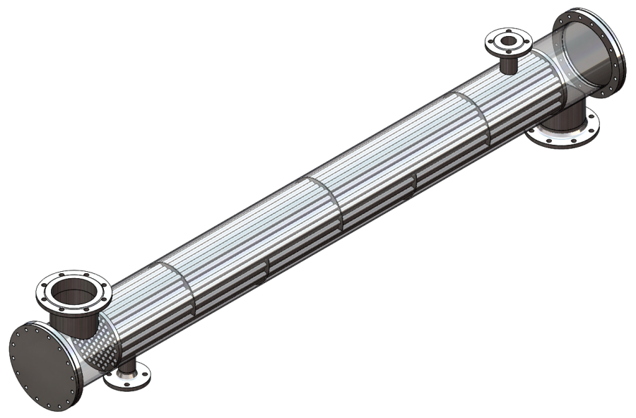 Rohrbündelwärmetauscher mit Kopfanschlüssen in Achse